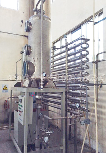 该装置与传统的浓缩装置比较,具有尺寸紧凑、占地面积 小、浓缩时间短、操作简便、浓缩温度低、可以消除浓缩 时产生的泡沫、对粘度高的料液也适用等特点。